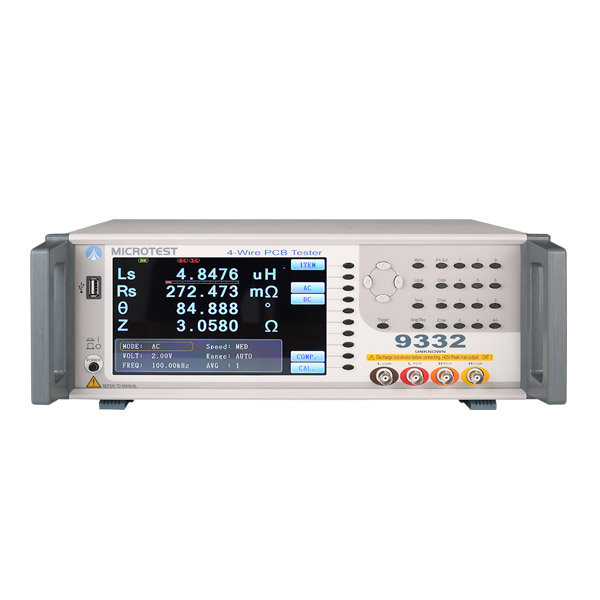 9332 搭载PCB气动复合式治具(客制化),进行多步编程自动化测试功能 一次可测试32组线圈电感阻抗测试 满足PCB厂惯用Panel-Test(多联板)高产能检测 测试线圈板的项目包含(Ls/Rs/DCR/Q等参数)